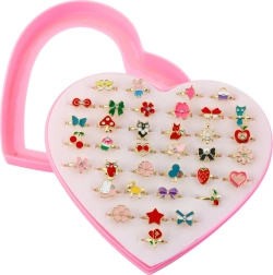 Tento pestrý set prstienkov poteší všetky malé parádnice. Vďaka nastaviteľnému priemeru sa prstienky ľahko prispôsobia detským prstíkom a poskytujú pohodlné a bezpečné nosenie. Transparentné viečko srdiečkového puzdra umožní prehľadné uloženie a rýchly výber obľúbených motívov.