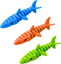 Objavte vodnú zábavu so sadou troch farebných žralokov, ktorí motivujú deti k potápaniu a hľadaniu hračiek na dne bazéna. Vďaka vyváženej hmotnosti stabilne klesajú, majú hladký povrch a ľahko sa chytajú aj menšími rukami. Skvelé na hru, tréning orientácie pod vodou a budovanie sebavedomia pri plávaní.