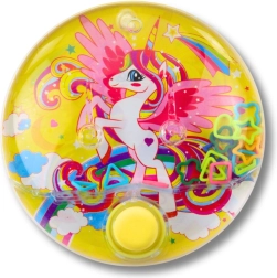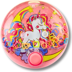 Vrecková vodná hra s motívom jednorožca zaujme deti farebným dizajnom a jednoduchým ovládaním bez batérií. Jedným tlačidlom rozhýbete krúžky vo vode a snažíte sa ich trafiť na kolíčky – skvelá zábava na tréning jemnej motoriky, koordinácie oko–ruka a sústredenia. Kompaktný priemer 10 cm je ideálny na cesty, do škôlky aj domov.