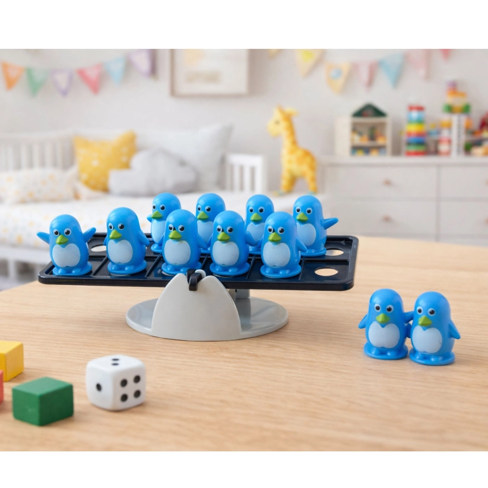 Balančná hra s tučniakmi je ideálna pre malých objaviteľov, ktorí sa učia prostredníctvom hry. Úlohou je umiestňovať figúrky na obe strany hojdačkovej základne tak, aby zostala v rovnováhe. Každý ťah si vyžaduje pozorovanie, plánovanie a predvídanie, čím prirodzene posilňuje kognitívne zručnosti.