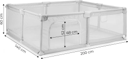 Priestranná detská ohrádka ECOTOYS s rozmermi 140 × 200 cm vytvára bezpečný a kontrolovaný priestor na hru doma aj na cestách. Vďaka stabilnej konštrukcii z nehrdzavejúcich rúrok, sieťovaným stenám pre dohľad a prúdenie vzduchu, bočnému vstupu na zips a prenášacej taške je ideálna na každodenné používanie. Mäkké chrániče rohov, nožičky s prísavkami a jednoduchá montáž bez náradia zabezpečujú pohodlie a bezpečie pri hraní.