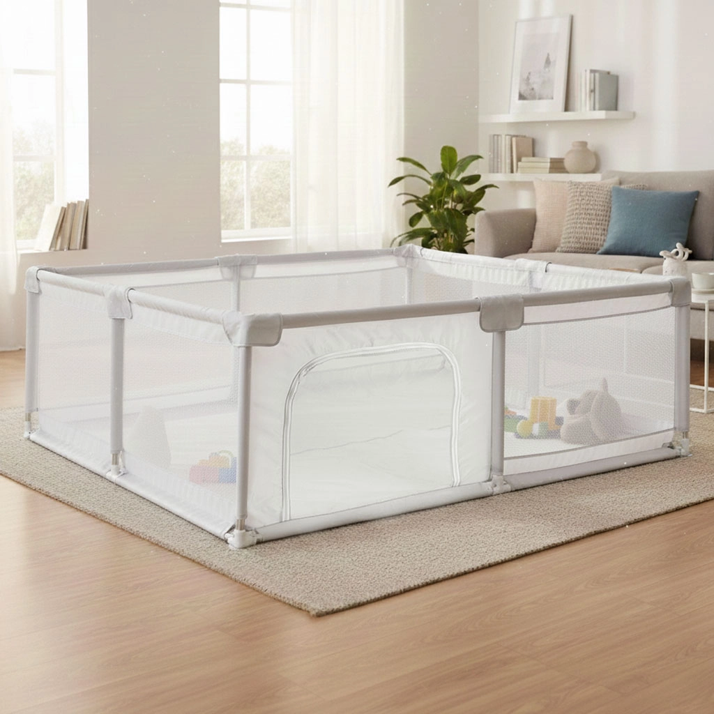 Ohrádka ECOTOYS ponúka veľkorysý priestor na voľný pohyb, podporu motorického rozvoja aj pokojné oddychové chvíle. Sieťované steny zaručujú stály prehľad o dianí vo vnútri a výbornú ventiláciu, zatiaľ čo vonkajší zips pri bočnom vchode bráni samovoľnému otvoreniu dieťaťom. Integrované vrecko na drobnosti udrží hračky, cumlík či obrúsky vždy po ruke.