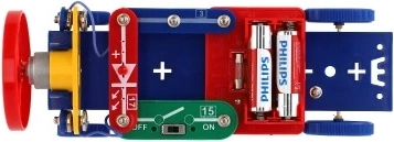 Zostavte jednoduché vozidlo s motorčekom a prepínačom, ktoré sa vďaka vrtuli rozbehne. Deti ihneď vidia, ako elektrický obvod uvádza model do pohybu.