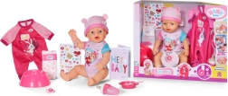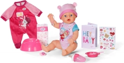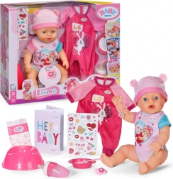 Obľúbená bábika BABY born Emma 43 cm v nežnom ružovom body prináša množstvo interaktívnej zábavy. Vie piť z fľaštičky, plakať, používať nočník a vďaka magickému tanieriku sa po priliatí vody objaví „jedlo“ pre realistické kŕmenie. Oči sa jej pomocou kúzelného cumlíka otvárajú a zatvárajú, pri uložení na spánok ich sama zavrie. Je ohybná, vhodná do vane a ľahko sa čistí.