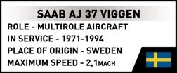 Vdýchnite život legende studenej vojny. Stavebnica verne zachytáva charakteristický „kačací“ layout a delta krídla stroja SAAB JA 37 VIGGEN, vrátane podvesenej výzbroje a detailne spracovanej kabíny. Trvácne tlače bez nálepiek s označením švédskeho letectva dodávajú modelu autentický vzhľad, ktorý vynikne v každej zbierke.