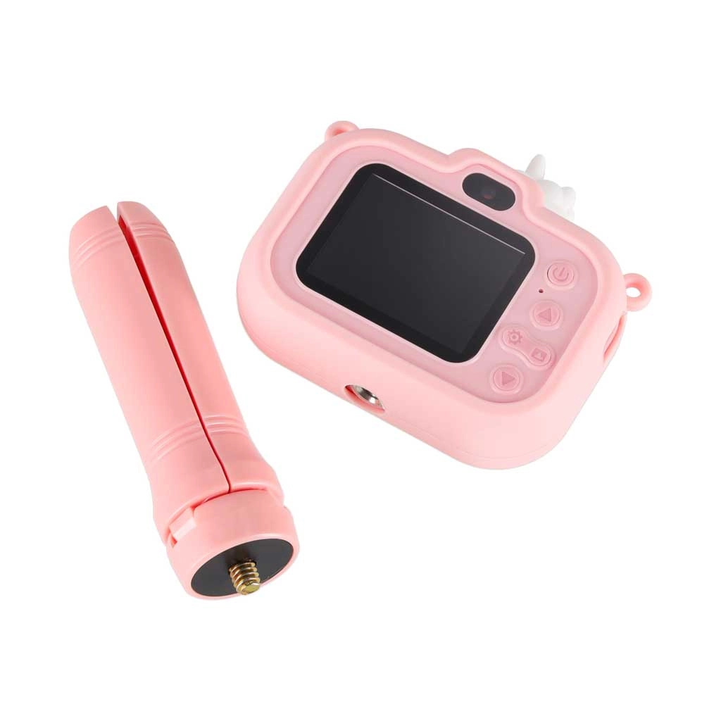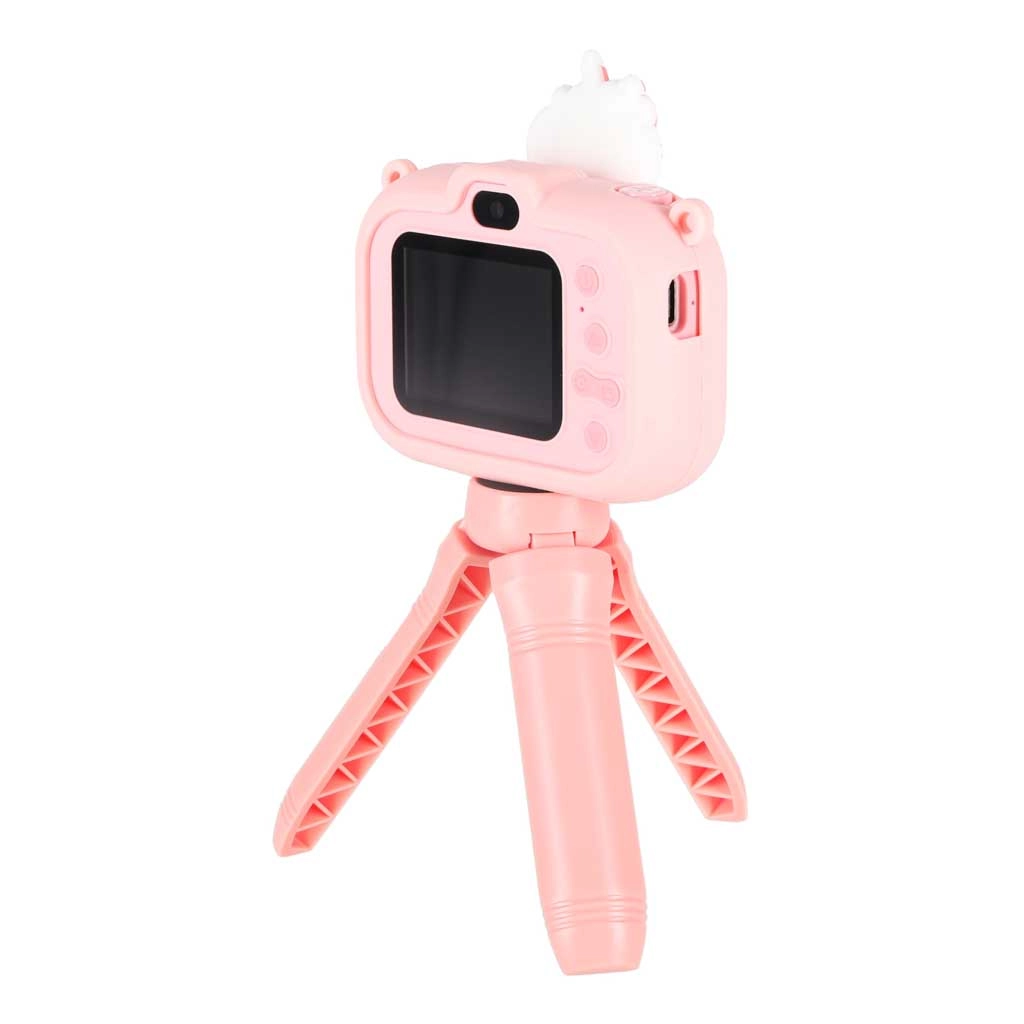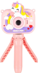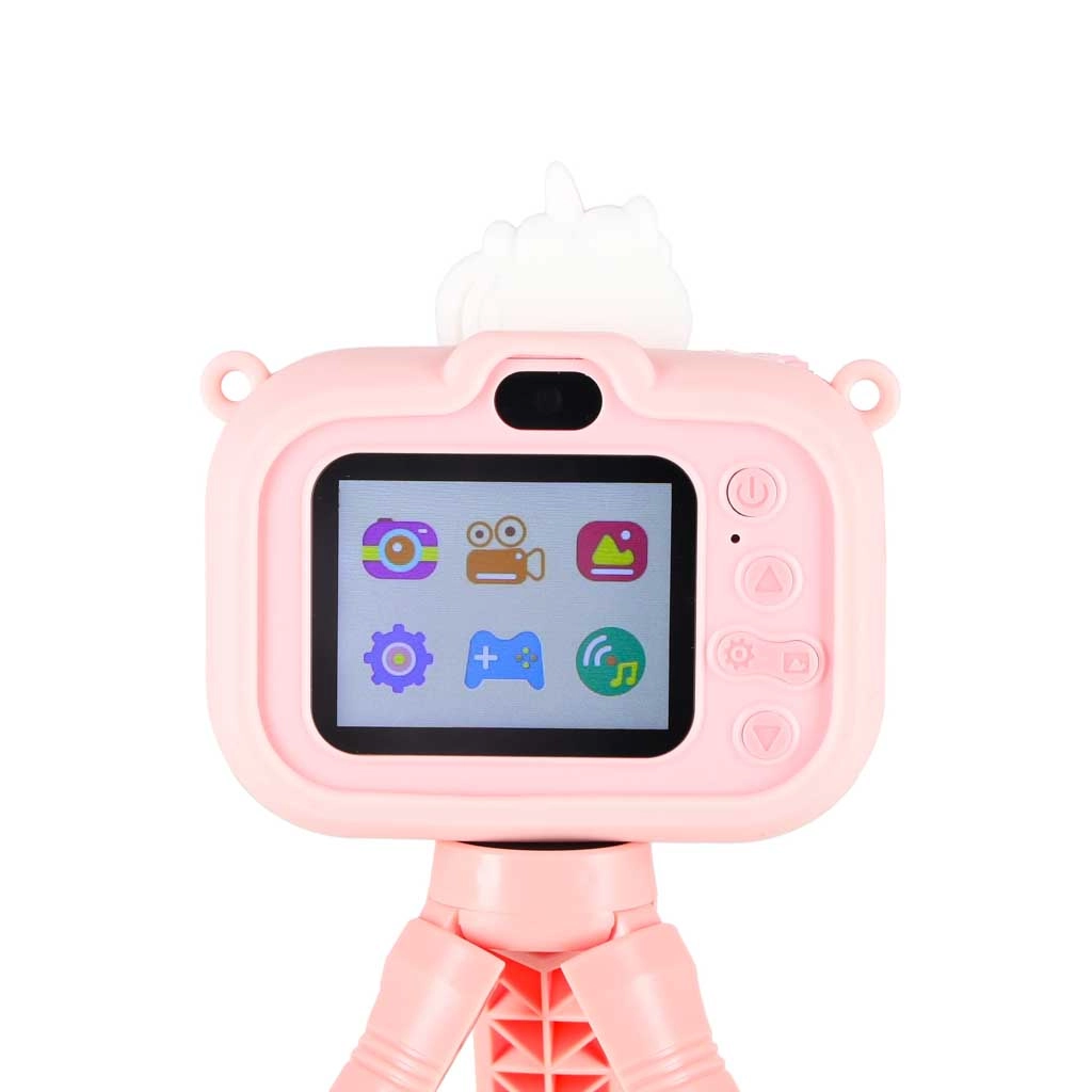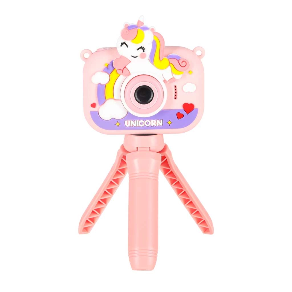 Roztomilý detský digitálny fotoaparát s motívom jednorožca a mini statívom poteší malých fotografov od 3 rokov. Ponúka 1080p video, 2,0" IPS displej, prednú aj zadnú kameru, 5 vstavaných hier a tiché ovládanie s nastaviteľnou hlasitosťou. Mäkké silikónové puzdro chráni prístroj, zatiaľ čo rukoväť–statív zaisťuje stabilné zábery doma aj vonku.