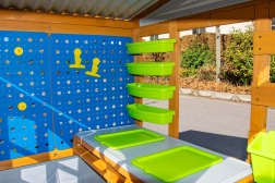 - Kreatívne STEM prvky – kolíková stena a pracovná plocha na bádanie a tvorenie.