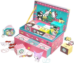 Vo vnútri nájdete pestrý mix malých hračiek a tematických doplnkov – prívesky na kľúče, nálepky, papierové dekorácie, mini figúrky a ďalšie rozkošné drobnosti v duchu HELLO KITTY. Premyslené balenie v jednotlivých krabičkách umocňuje radosť z každodenného objavovania. Spodná výsuvná zásuvka navyše ponúka priestor pre ďalšie poklady.