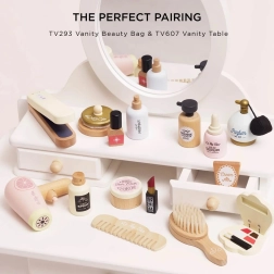 Táto štýlová kadernícka sada je ideálna ako prvé detské kaderníctvo. Deti môžu napodobňovať salónne procedúry, vytvárať účesy pre bábiky či kamarátov a rozvíjať svoju fantáziu. Vďaka odolnému vyhotoveniu z FSC dreva vydrží intenzívne hranie a je bezpečná pre malé rúčky.