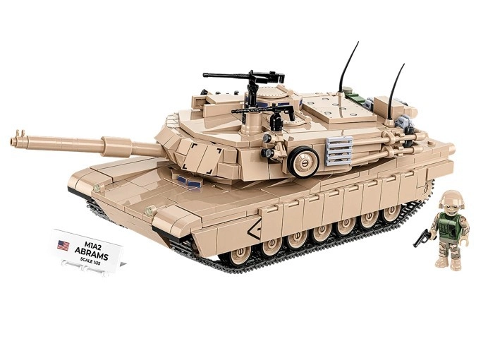 Model M1A2 Abrams presne vystihuje proporcie skutočného tanku. Vďaka premysleným dielikom a trvácnym potlačiam vyzerá skvelo na poličke aj v akcii.
