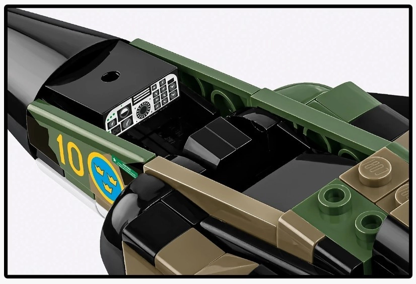 Vďaka pohyblivým riadiacim plochám, otočným kolesám a bohatej výbave – vrátane kontajnerov s kazetovou muníciou typu Bombkapsel 90 – je model skvelý na hranie aj na výstavku. Súčasťou je upravená figúrka pilota a stabilný, polohovateľný stojan s tabuľkou názvu, mierky a švédskej vlajky.