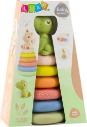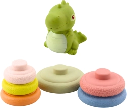 Farebná senzorická pyramída s roztomilým dinosaurom je ideálna pre deti od 6 mesiacov. Obsahuje rôzne textúry pre zmyslovú stimuláciu, mäkké bezpečné prvky a podporuje jemnú motoriku, koordináciu oko–ruka aj logické myslenie. Dinosaurus na vrchole po stlačení vydáva pískací zvuk, ktorý vyzýva k interakcii.