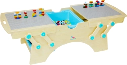 Drevený herný stôl pre deti od 3 rokov s dvoma hernými povrchmi a priestrannými úložnými boxmi je ideálny na kreatívne stavanie. Je kompatibilný s kockami LEGO, QMAN, SLUBAN, L-W a ďalšími, má bezpečný dizajn so zaoblenými hranami a odolnú konštrukciu. Súčasťou je aj stavebnica na okamžité hranie a podrobný návod na montáž.