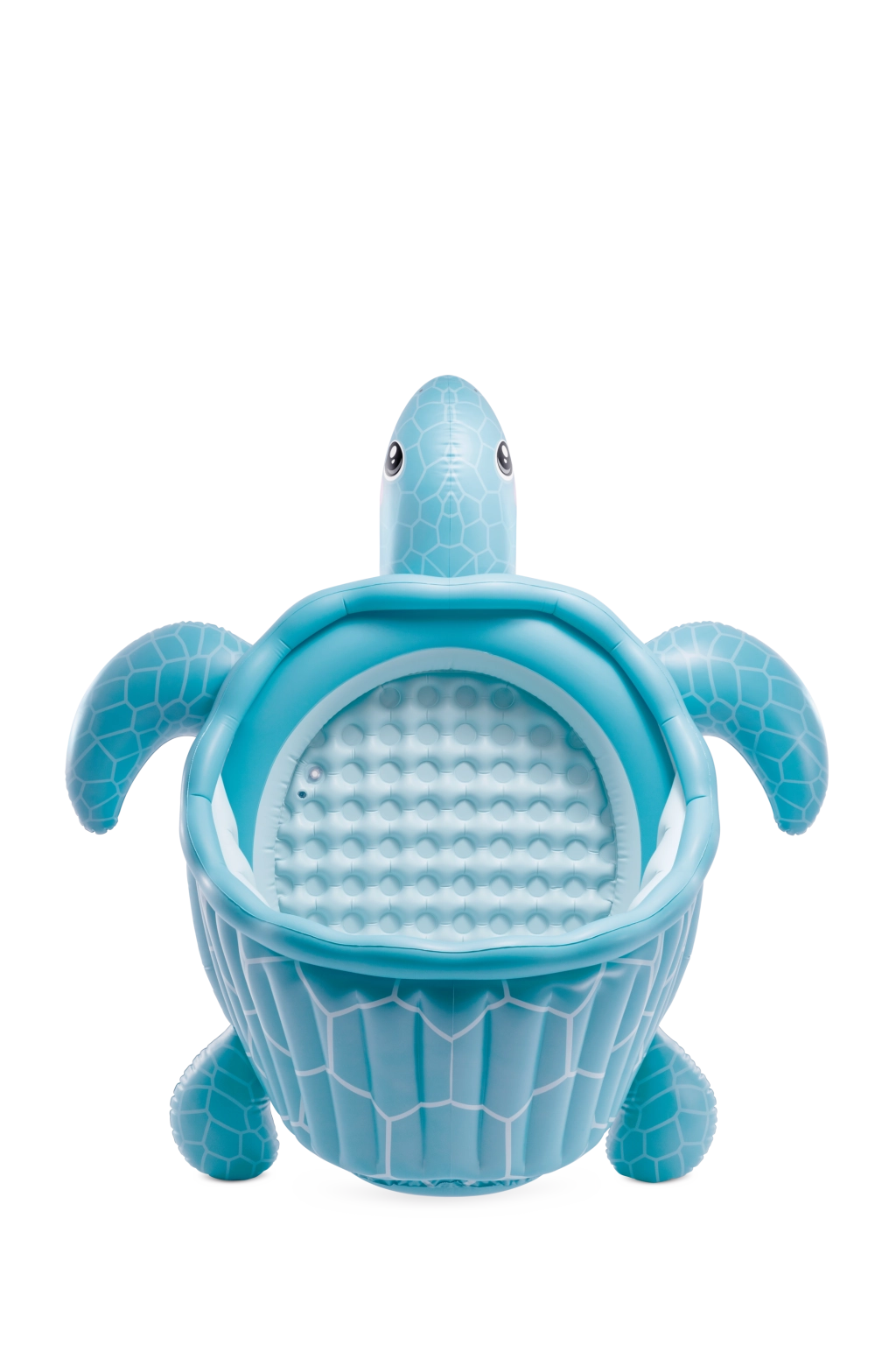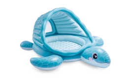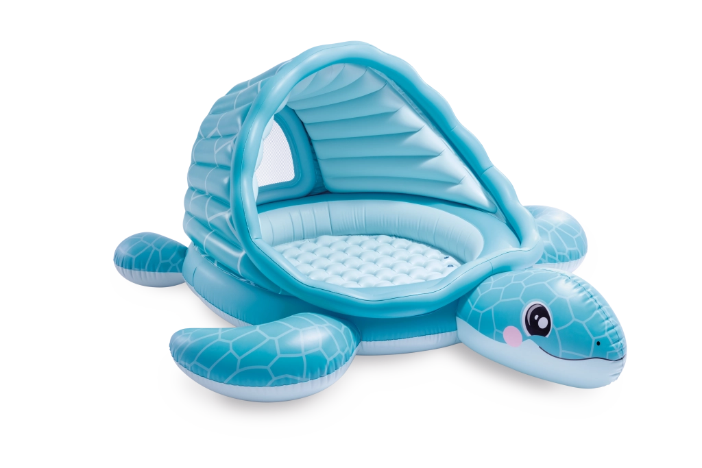 Nafukovací detský bazénik so strieškou Korytnačia zátoka prináša kombináciu hravého dizajnu a praktických funkcií. Svetlomodré prevedenie s motívom panciera a veselou korytnačou tvárou zaujme na prvý pohľad, zatiaľ čo mäkké nafukovacie dno zaistí pohodlie a tlmenie nárazov na tvrdom povrchu.