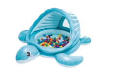 Rozkošný nafukovací bazénik v tvare korytnačky s praktickou strieškou poskytne deťom bezpečné a pohodlné miesto na letné hranie. Má mäkké nafukovacie dno pre komfort, tieniacu striešku so sieťovanými okienkami na vetranie a dohľad a možno ho využiť aj ako bazeník na loptičky. Odolný PVC materiál a ľahké nafukovanie aj vypúšťanie z neho robia ideálny doplnok na záhradu či terasu.