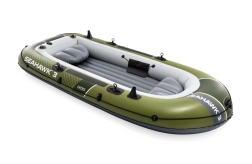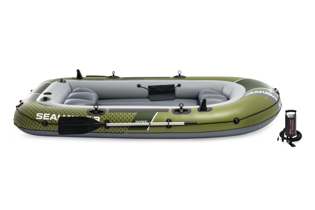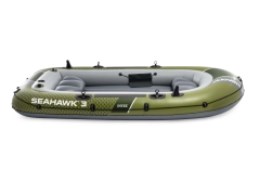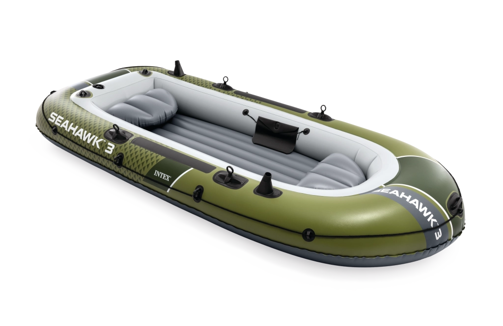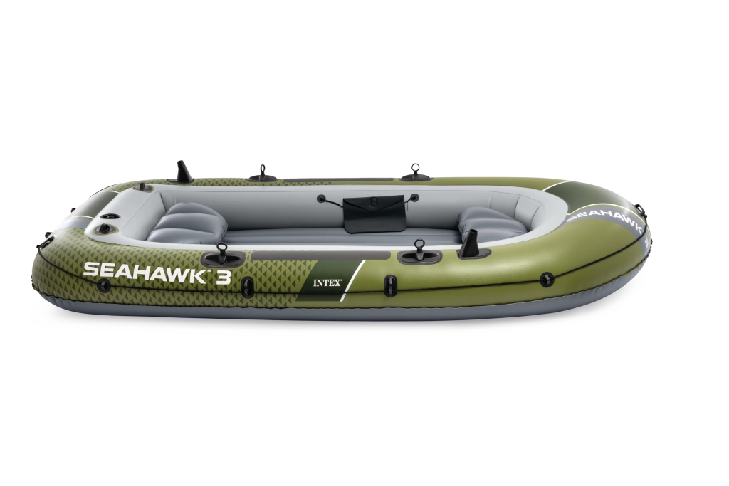 Model INTEX Seahawk 3 je univerzálny nafukovací čln na rekreáciu, rybárčenie aj pokojné vychádzky po jazerách a riekach. Vďaka trom vzduchovým komorám vrátane pomocnej komory vo vnútri trupu a odolnému vinylu vydrží náročnejšie podmienky a poskytne istotu na vode. Nafukovacia podlaha s I-nosníkom zvyšuje tuhosť a komfort posádky.