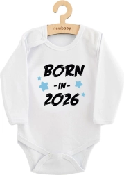 Doprajte svojmu bábätku pohodlné a originálne body s potlačou Born in 2026 v obľúbenej modrej farbe. Kvalitná 100% bavlna je mäkká, priedušná a jemná k citlivej detskej pokožke. Certifikované farby a štandard OEKO-TEX STANDARD 100 zabezpečujú bezpečné nosenie každý deň.