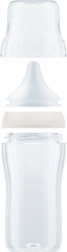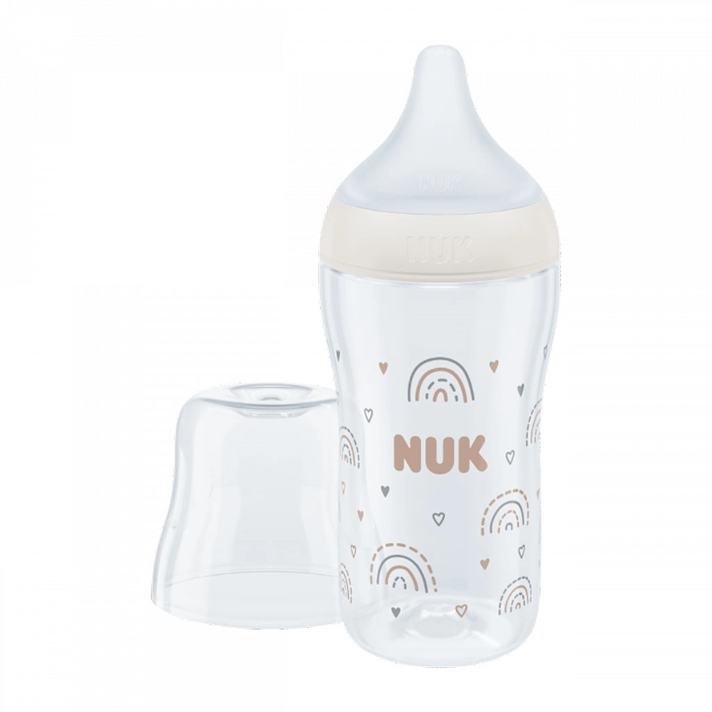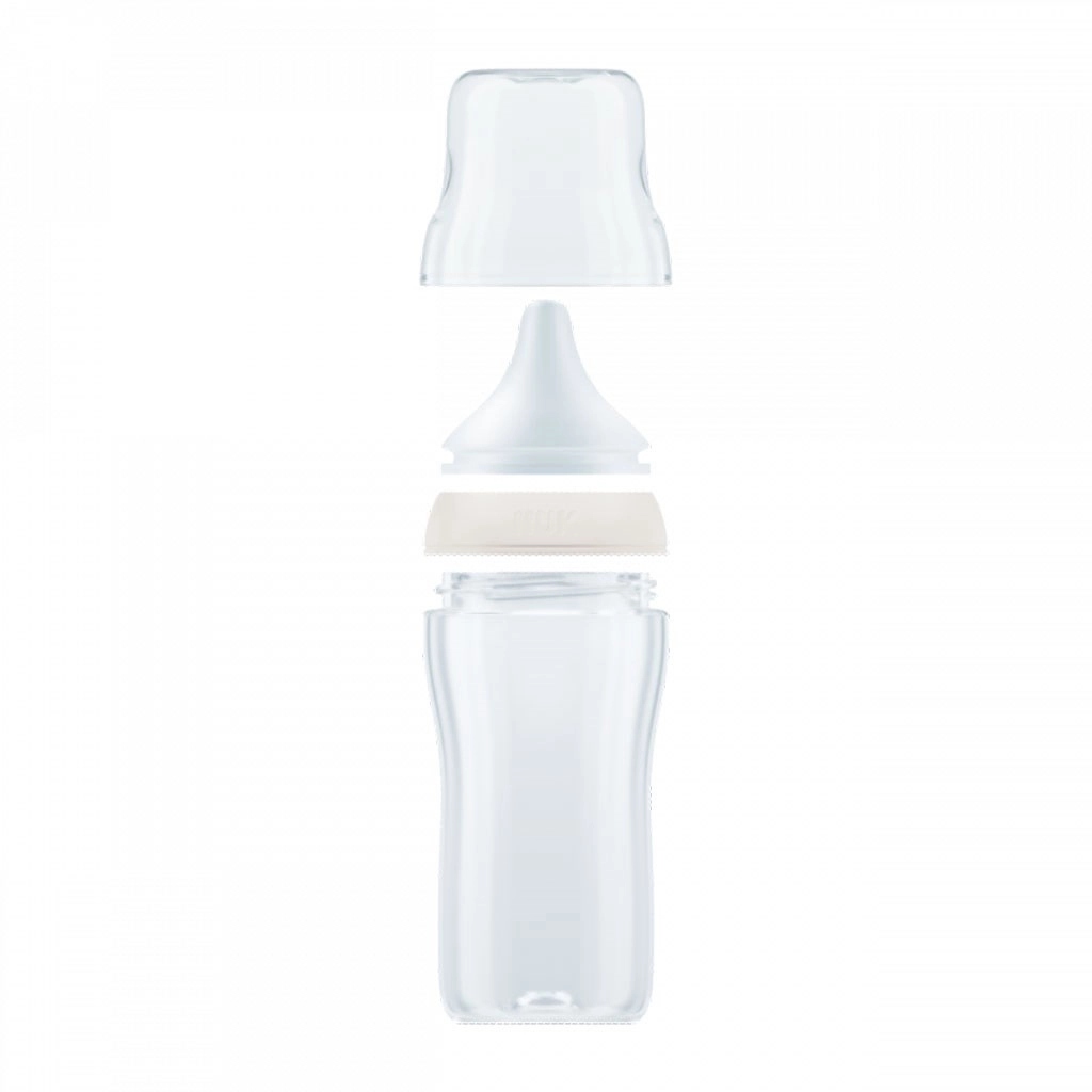 Sklenená fľaša NUK Perfect Match napodobňuje prirodzený pocit z dojčenia – má špeciálny ortodontický tvar modelovaný podľa materskej bradavky, dostatok priestoru pre pohyb jazyka a čeľustí a širokú oporu pier, ktorá pripomína pokožku maminky. Vďaka vylepšenému Anti Colic Air System je tok mlieka prirodzený a pokojný, takže bábätko pije uvoľnene bez zbytočného prehĺtania vzduchu.