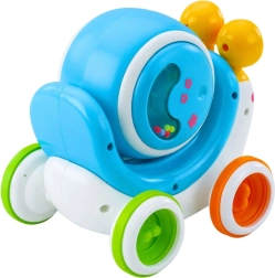 Stláčateľné kolieska trénujú jemnú motoriku, slimák jazdí a motivuje k pohybu. Pohyblivé oči pridávajú zábavný interaktívny efekt.