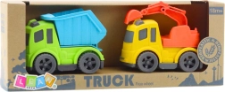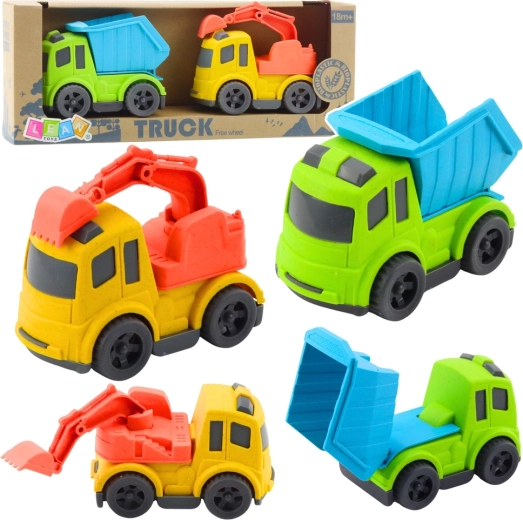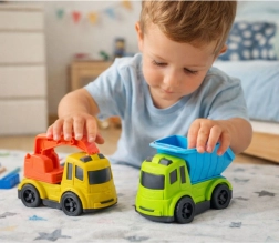 Sklápačka má zdvihaciu a vyklápaciu korbu na jednoduché vykladanie nákladu. Minibager je vybavený pohyblivým a otočným ramenom s lyžicou, takže deti môžu nakladať, presúvať a budovať podľa vlastnej fantázie. Manipulácia s prvkami podporuje koordináciu oko–ruka a logické myslenie.