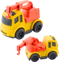 Žlté odťahové vozidlo má otočné rameno s hákom, ktoré možno vysunúť na nakladanie a odťah menších hračiek. Podporuje koordináciu a presnosť pohybov.