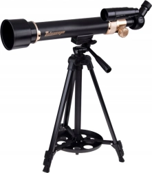 Tento refraktorový teleskop kombinuje odolnú hliníkovú konštrukciu s plynulým zaostrovaním a reguláciou náklonu pre pohodlné a presné pozorovanie. Vďaka výškovo nastaviteľnému statívu (až 1,35 m) je vhodný pre mladých nadšencov aj dospelých, a to ako na nočnú astronómiu, tak na denné pozorovanie krajiny a prírody.