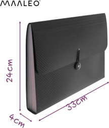 Udržte si poriadok v papieroch vďaka praktickej harmonikovej zakladačke MAALEO vo formáte A4 s 13 priehradkami. Odolný vodoodolný materiál, indexačné štítky na rýchle vyhľadanie a bezpečné uzatváranie na gumičku robia z tohto organizéra spoľahlivého pomocníka do kancelárie, školy aj domácnosti.