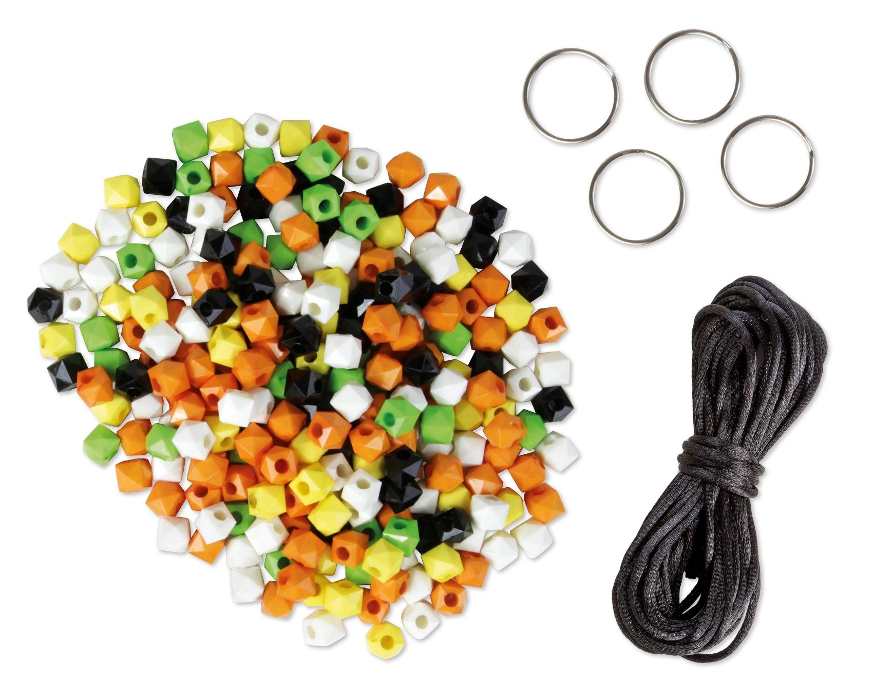Sada obsahuje 250 farebných korálikov, čiernu šnúrku a 4 kovové krúžky – nemusíte nič dokupovať, stačí začať.