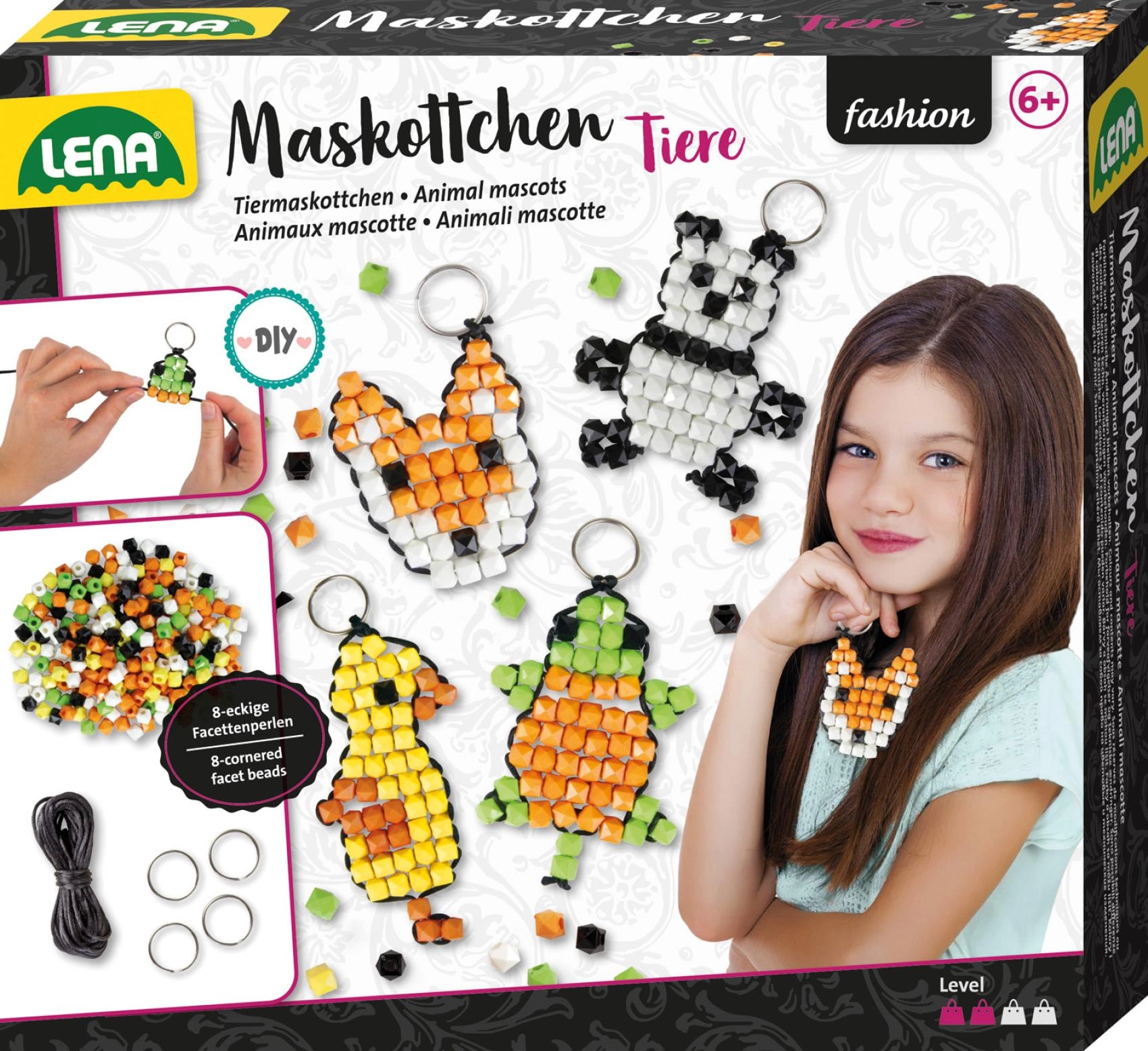 V balení nájdete 250 módnych korálikov v pestrých farbách, čiernu šnúrku na navliekanie a 4 kovové krúžky na dokončenie príveskov. Postup je jednoduchý a intuitívny – stačí navliekať podľa vzoru a behom chvíle vytvoríte štýlové talizmany.