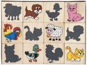 Pexeso z drevených kartičiek s potlačou zvieratiek a ich tieňov. Pomáha zábavným spôsobom rozvíjať predstavivosť a pamäť vašich detí.