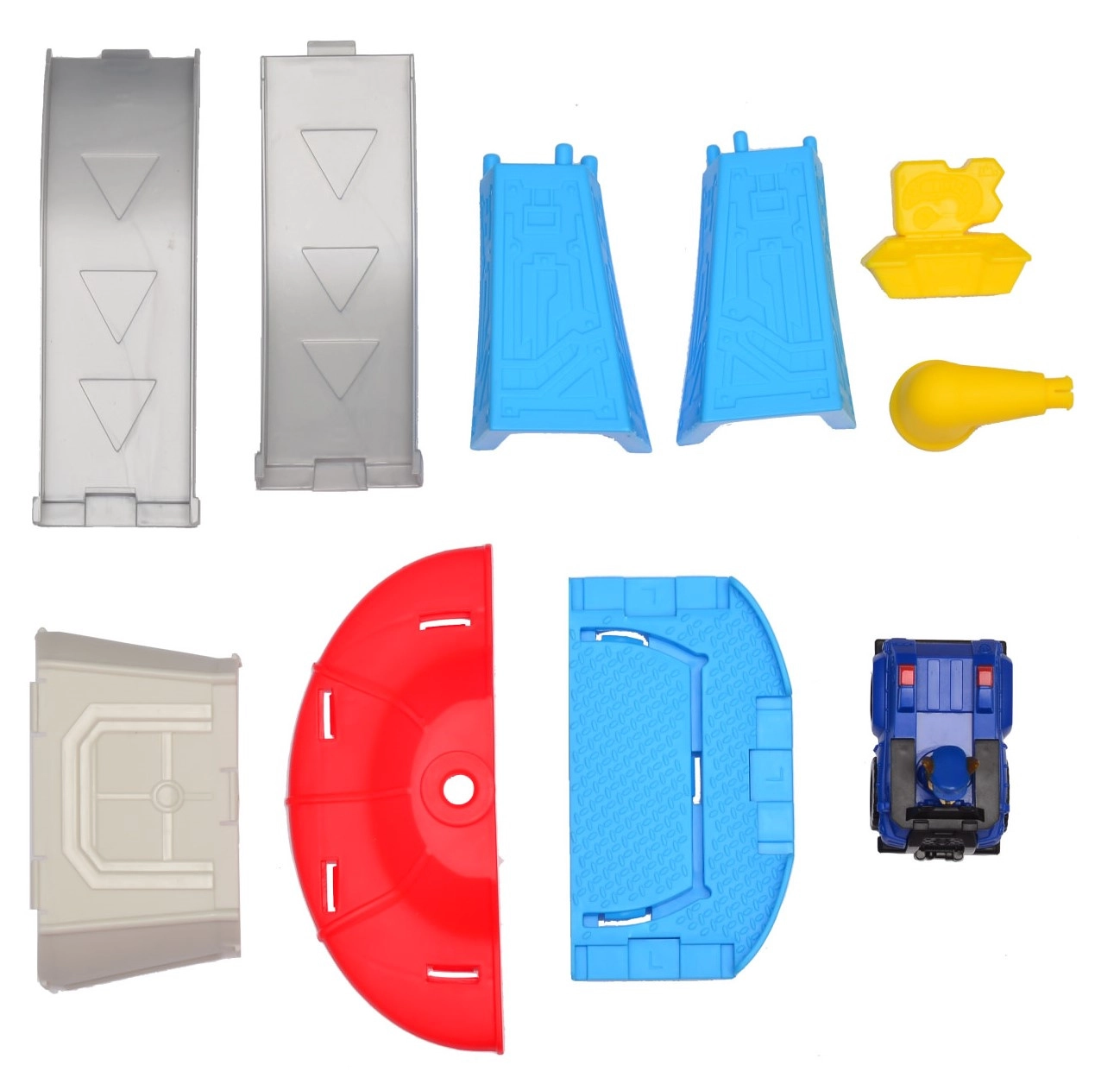 Jednotlivé komponenty sa jednoducho zacvaknú. Súčasťou je veža, rampa a vozidlo CHASE na okamžitú hru.