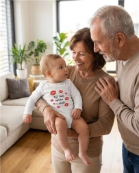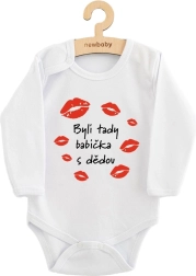 Pohodlné detské body s dlhým rukávom od značky NEW BABY zo 100 % bavlny poteší jemnosťou k detskej pokožke a vtipnou potlačou „Boli tu babička s dedom“. Vďaka praktickému zapínaniu na cvoky na ramienku a medzi nožičkami je prebaľovanie aj obliekanie rýchle a jednoduché. Farby potlače sú certifikované a bezpečné pre bábätká.