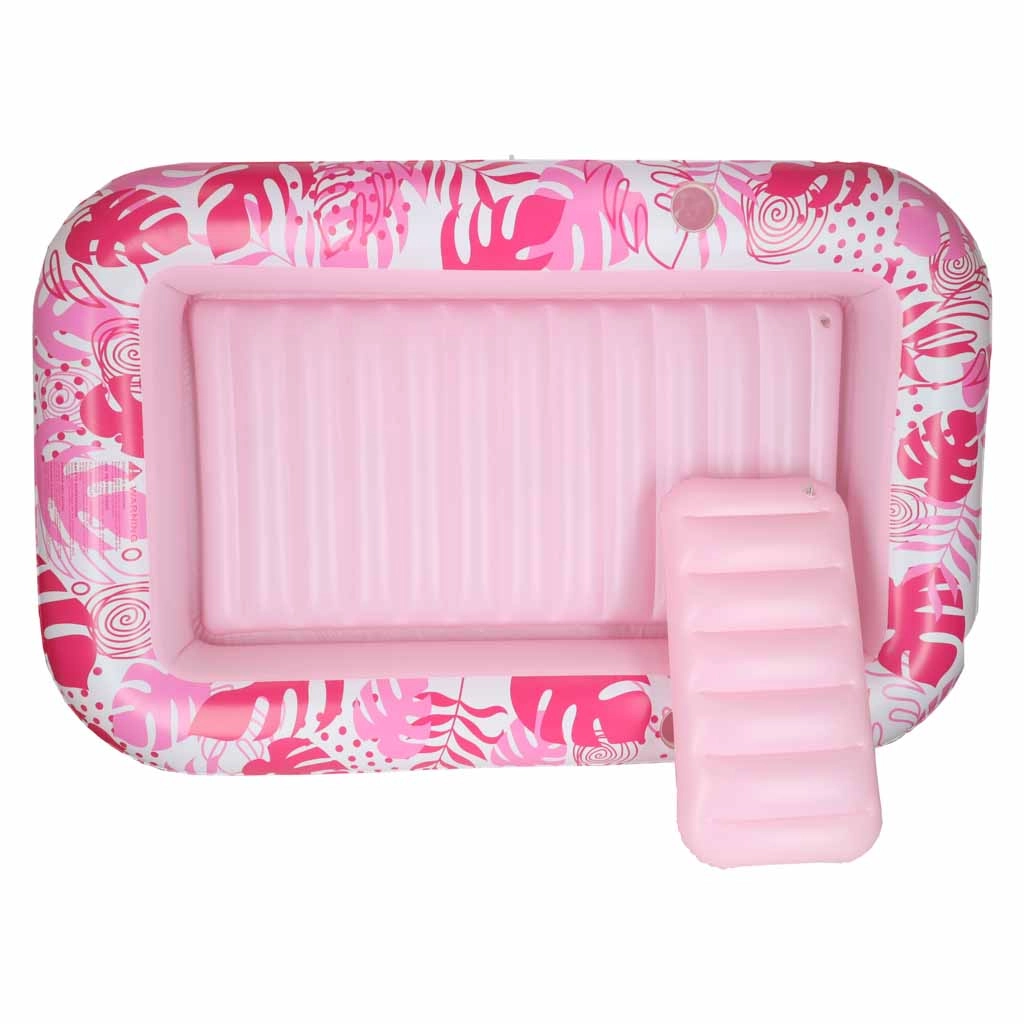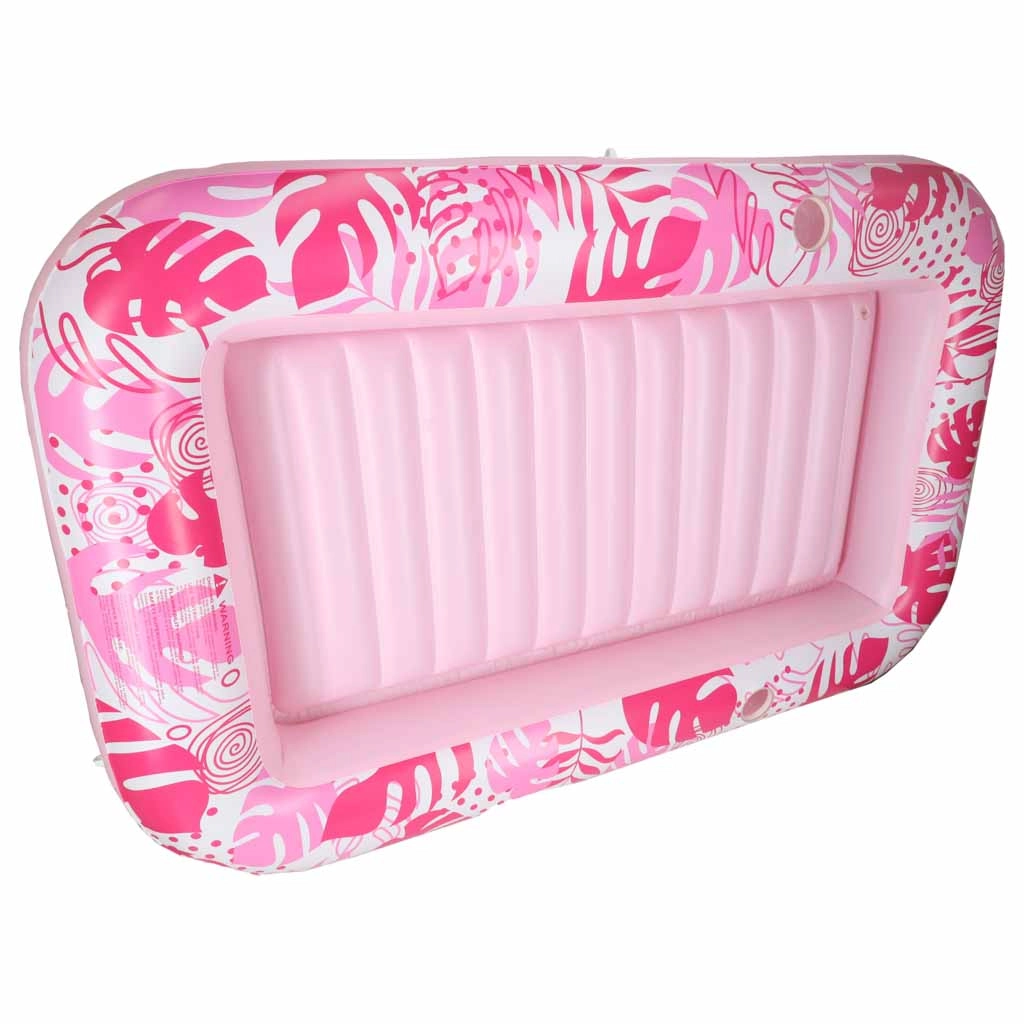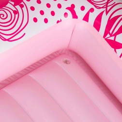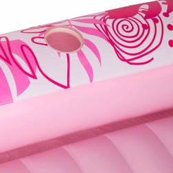 Dva integrované držiaky na nápoje udržia osvieženie vždy po ruke, zatiaľ čo ľahká manipulácia a prenosnosť z neho robia spoľahlivého parťáka na každý letný výlet. Ružovo-biely dizajn s tropickým motívom dodá vášmu oddychu štýl.