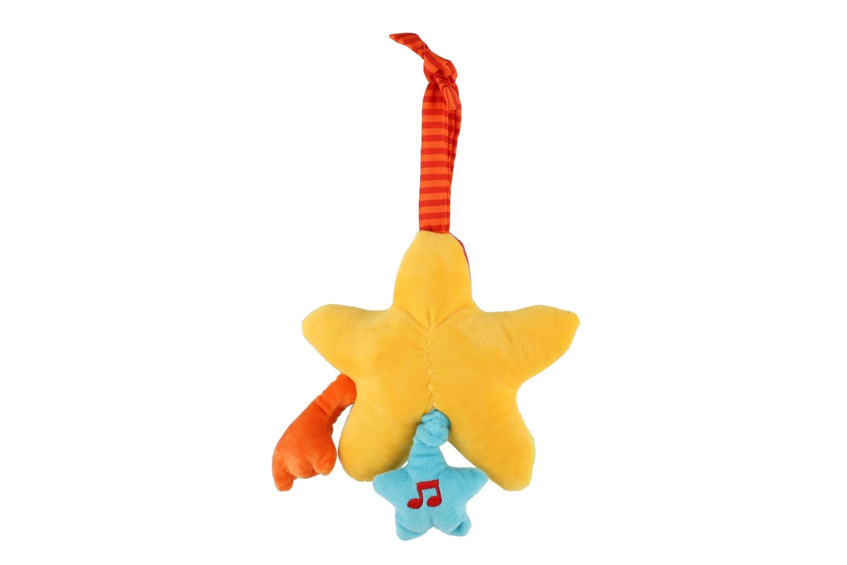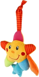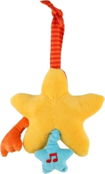 Roztomilá závesná plyšová hviezdička s naťahovacím hracím strojčekom poteší bábätká od 3 mesiacov. Po zatiahnutí za šnúrku prehrá jemnú upokojujúcu melódiu, podporuje pokojné zaspávanie a zabavenie na cestách. Mäkký hebký plyš, veselé farby a usmiata tvárička lákajú k dotyku aj pozorovaniu. Praktické pútko na zavesenie umožní jednoduché pripevnenie na postieľku, kočík či autosedačku.
