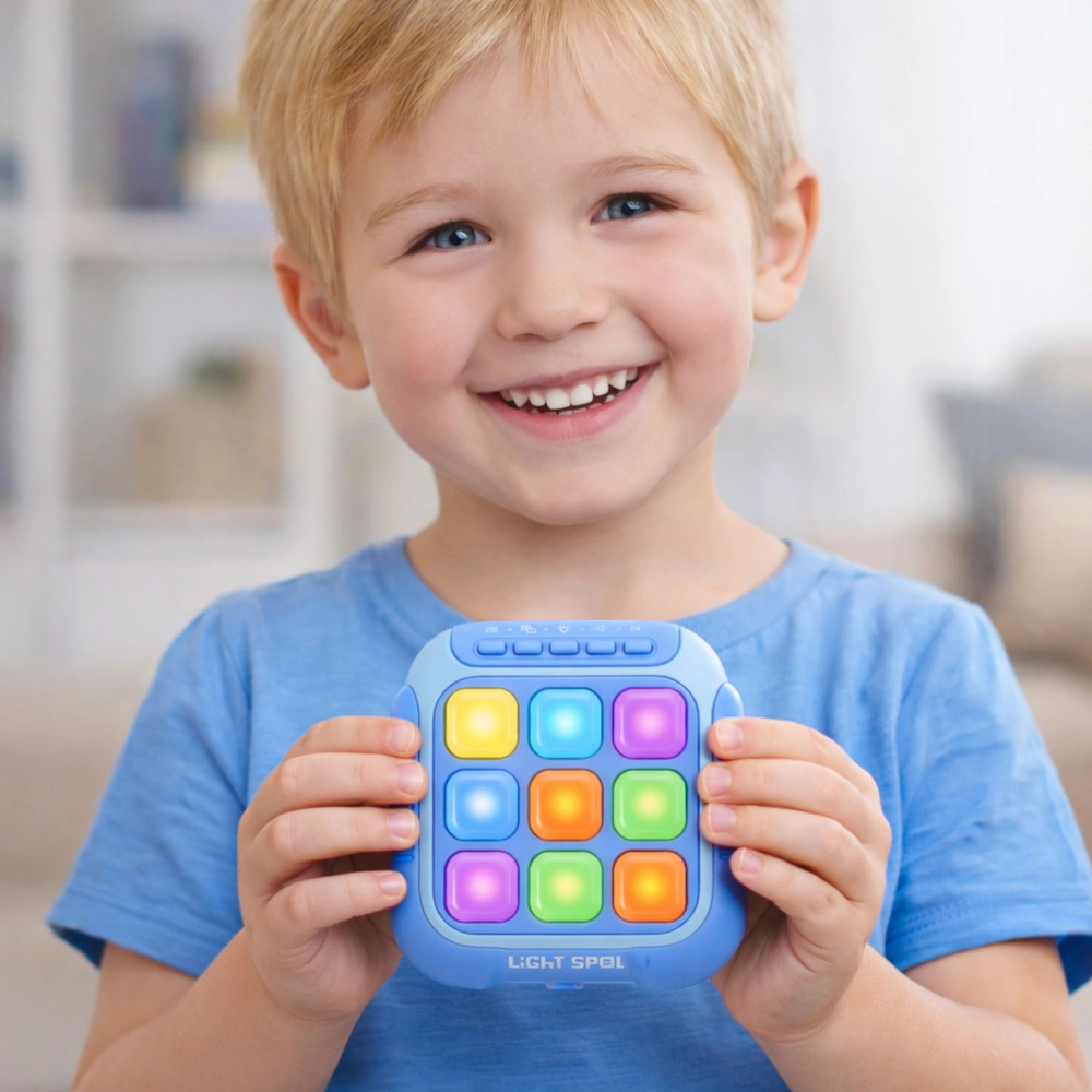 Kompaktná elektronická hra LIGHT SPEED je šikovná vrecková konzola s podsvietenými tlačidlami a 6 hernými režimami, ktorá rozvíja reflexy, pamäť a koncentráciu. Vďaka jednoduchému ovládaniu, farebným LED a odolnej konštrukcii je ideálna na doma aj na cesty.