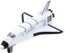 Vďaka mechanickému naťahovaciemu pohonu sa raketoplán po spätnom natiahnutí sám rozbehne, čo prináša do hry dynamiku a radosť z pohybu. Realistické potlače a čierno-biele prevedenie pripomínajú skutočné vesmírne stroje a podporujú kreatívnu a tematickú hru.
