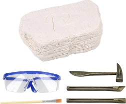 Táto archeologická sada deťom umožní zažiť skutočné „vykopávky“. Vo vnútri odolného sadrového bloku je schovaná tajomná lebka – môže patriť rôznym prehistorickým tvorom, a preto je každý objav jedinečný. Vďaka dlátam/sekáčikom, kladivku a štetcu si deti vyskúšajú, ako opatrne odhaľovať nález, čistiť ho a skúmať detaily.