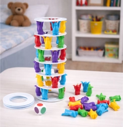 Zábavná rodinná balančná hra s farebnými tučniakmi, v ktorej hráči podľa farby na kocke stavajú a vyvažujú vežu z krúžkov a figúrok. Podporuje trpezlivosť, súhru oka a ruky a logické myslenie. Vďaka jednoduchým pravidlám a odolným plastovým dielom je ideálna pre deti aj dospelých na spoločné večery bez obrazoviek.
