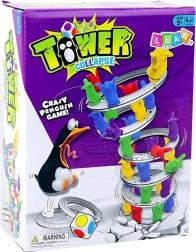 Postavte čo najvyššiu vežu z bielych krúžkov a farebných tučniakov a hrajte na istotu – alebo riskujte! Farba na kocke určí, aký dielik umiestnite. Každý ťah zvyšuje napätie a skúša stabilnú ruku, koncentráciu aj jemnú motoriku. Prehráva ten, komu sa veža zrúti.