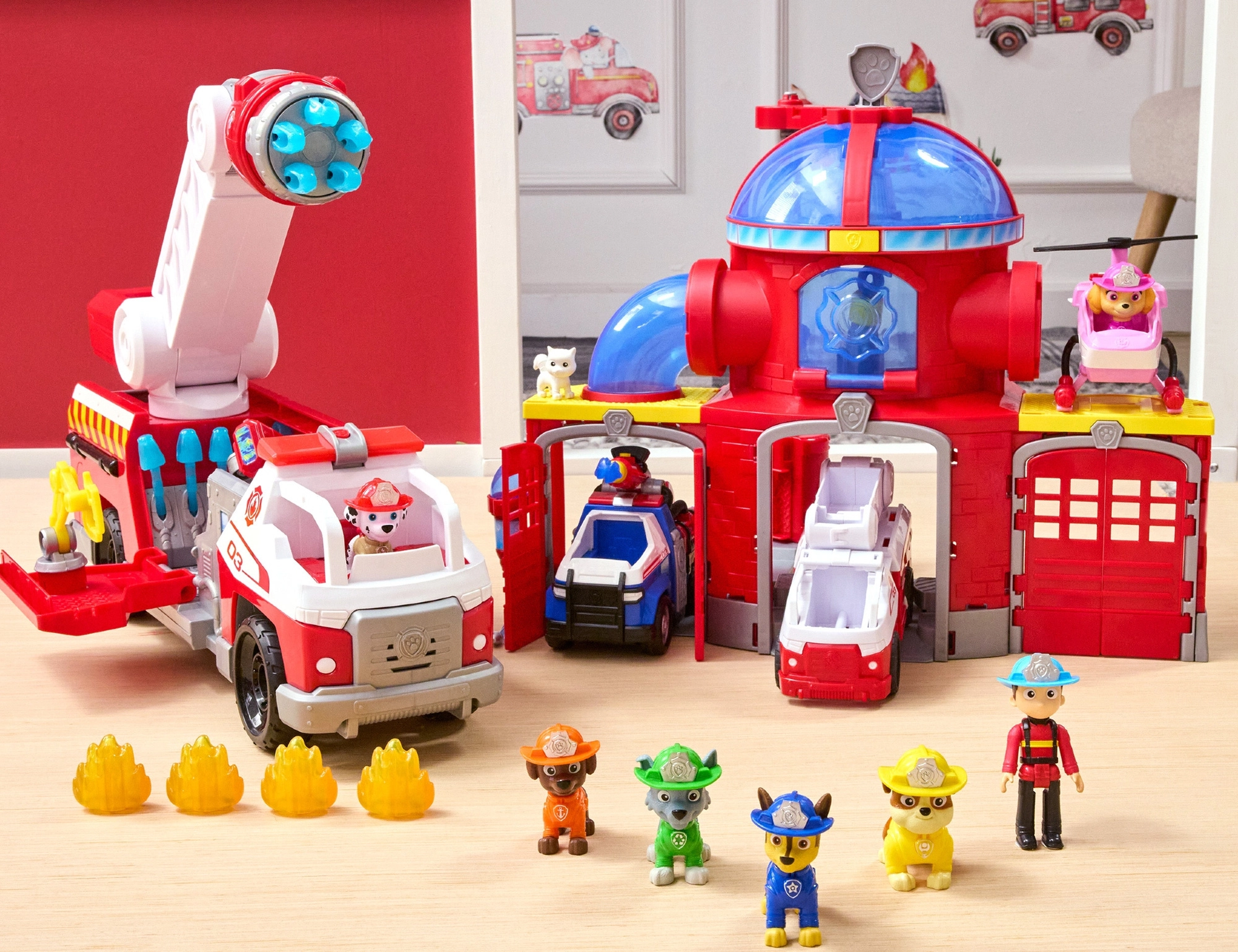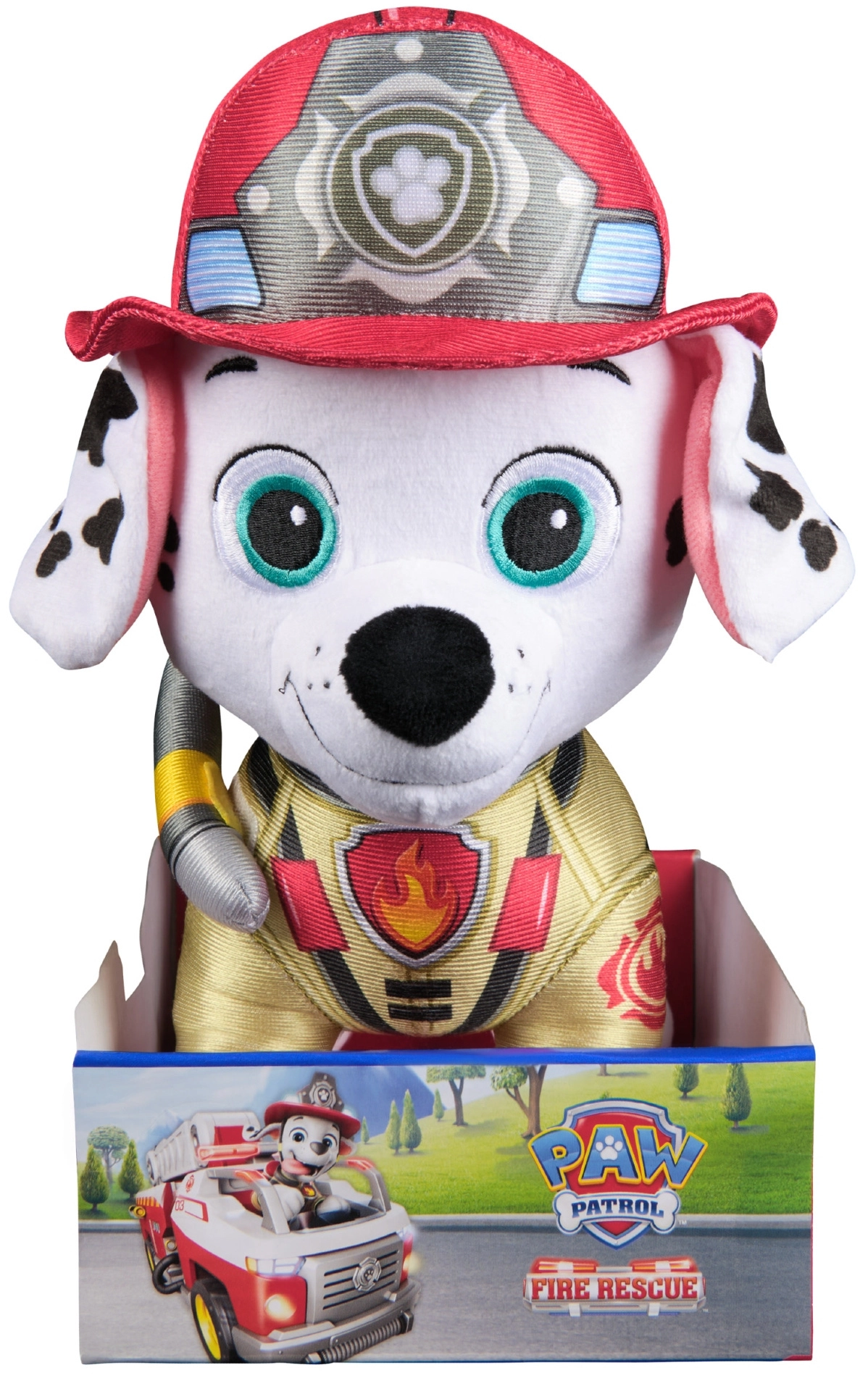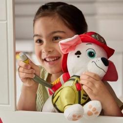 Deti si zamilujú autentický vzhľad – bielu srsť s čiernymi fliačikmi, červenú prilbu, žltú vestu a mäkkú hadicu. Bezpečné vyšívané oči a detaily bez malých oddeliteľných častí z neho robia skvelú voľbu pre role-play so záchranárskou tematikou.