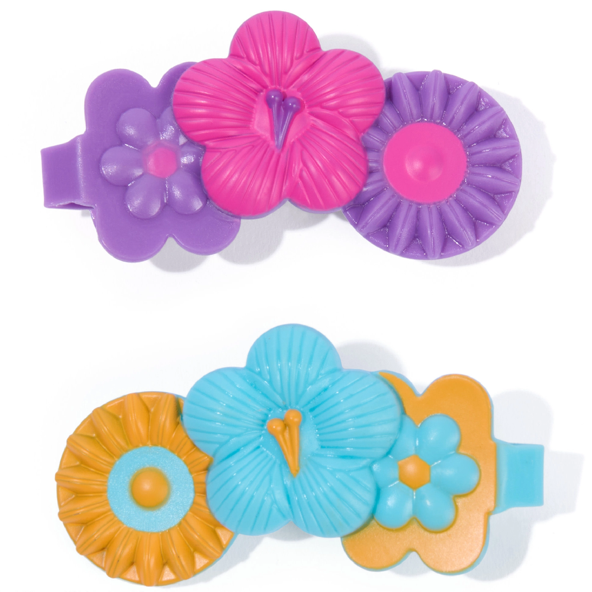 Mäkké, husté vlasy možno česať a zdobiť priloženými kvetinovými sponkami – ideálne na kreatívne účesy a rozvoj jemnej motoriky.