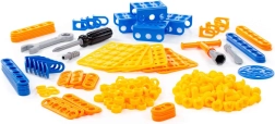 - Perforované diely, nosníky, skrutky a matičky, detské náradie (skrutkovač, kľúč)