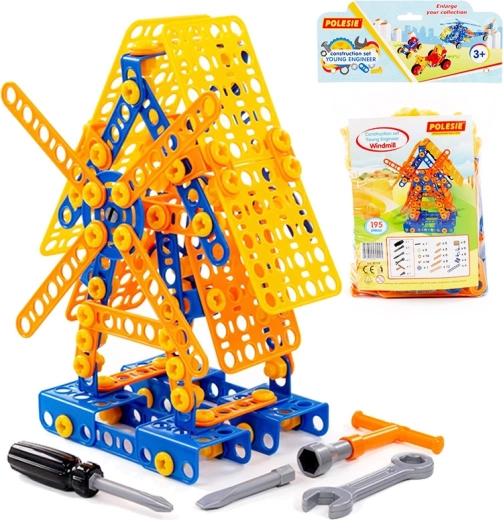 Kreatívna stavebnica veterný mlyn zo série Mladý inžinier rozvíja detskú logiku, manuálnu zručnosť a fantáziu. Vďaka perforovaným dielikom, skrutkám a plastovým nástrojom deti ľahko postavia model s otáčajúcimi sa lopatkami. Kompaktné rozmery 160 × 100 × 220 mm, vhodné pre deti od 3 rokov.