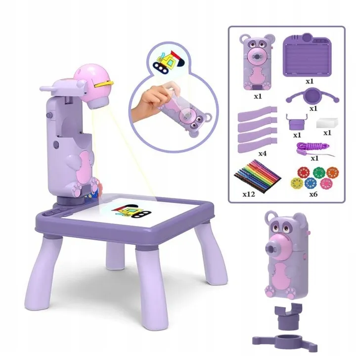 Tento detský projektor na kreslenie s motívom medvedíka je ideálnou pomôckou pre prvé krôčiky vo výtvarnej výchove. Deti môžu ľahko obkresľovať premietané obrázky z kotúčov s motívmi zvierat, vozidiel a dinosaurov a súčasne rozvíjať koordinačné zručnosti, trpezlivosť a predstavivosť.