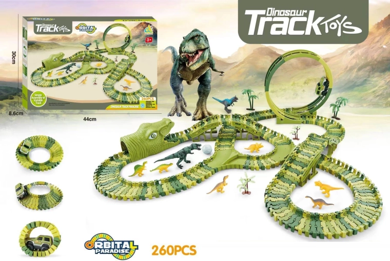 Táto farebná dinosauRIA autodráha ponúkne deťom hodiny zábavy a rozvoja predstavivosti. Vďaka 260 dielom možno trať skladať do rôznych tvarov a výšok, takže každá hra je iná. Súčasťou je batériové autíčko, ktoré jazdí po trati a podnecuje deti k tvorivej hre.