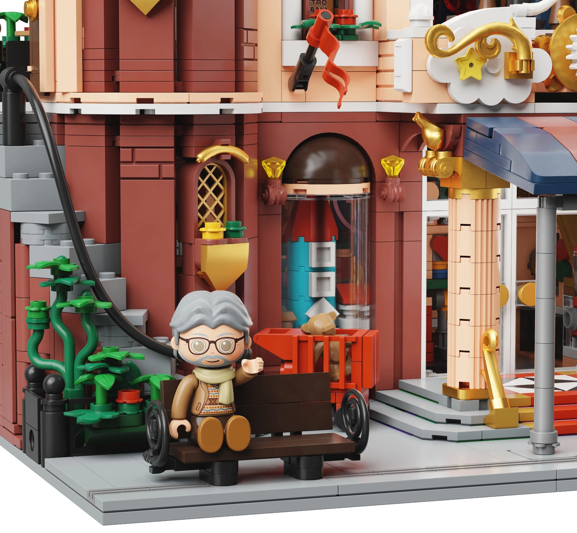 Tento jedinečný set v retro štýle kombinuje krásnu architektúru s premyslenými funkciami na hranie aj vystavenie. Krémovo‑červená fasáda, zdobné vežičky a realistické výklady vytvárajú autentickú atmosféru staromestského hračkárstva. Stavebnica je ideálna pre zberateľov aj tvorivých staviteľov, ktorí hľadajú bohaté detaily a modulárnu konštrukciu.
