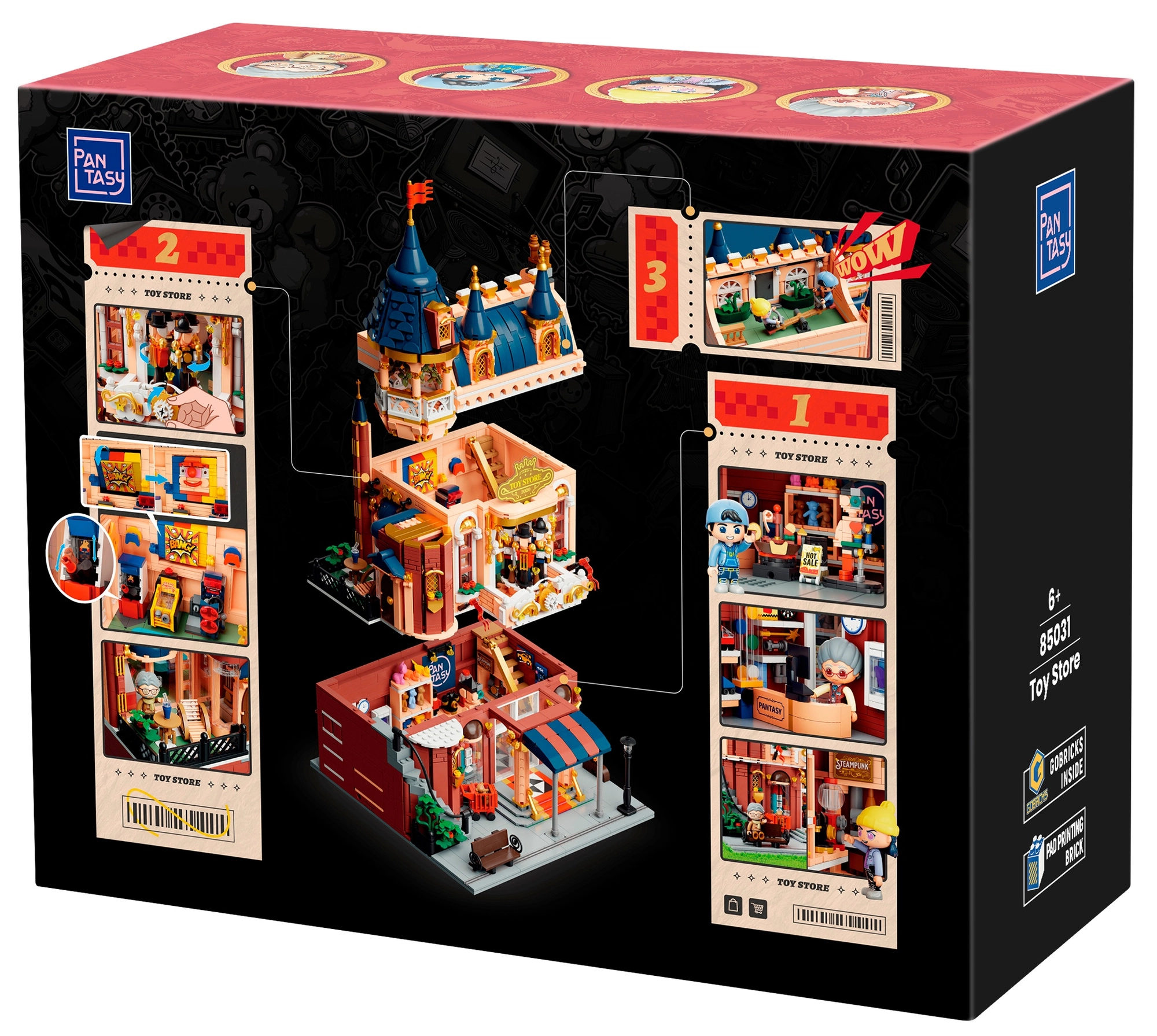 Budova sa skladá z troch ľahko oddeliteľných podlaží: prízemie – obchod s hračkami s miniatúrnymi modelmi a výstavami, 1. poschodie – retro herný salón s automatmi a stolovými hrami a strešná terasa s altánkom na oddych. Štyri minifigúrky oživujú scénky zo života – predavač, zákazníci aj deti.