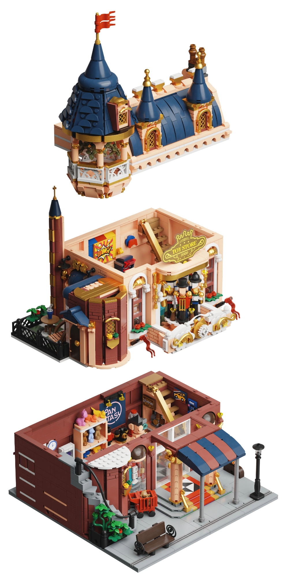 Každé poschodie možno samostatne zdvihnúť a preskupiť. Užite si detailné interiéry – od výkladu obchodu po útulnú strešnú terasu.