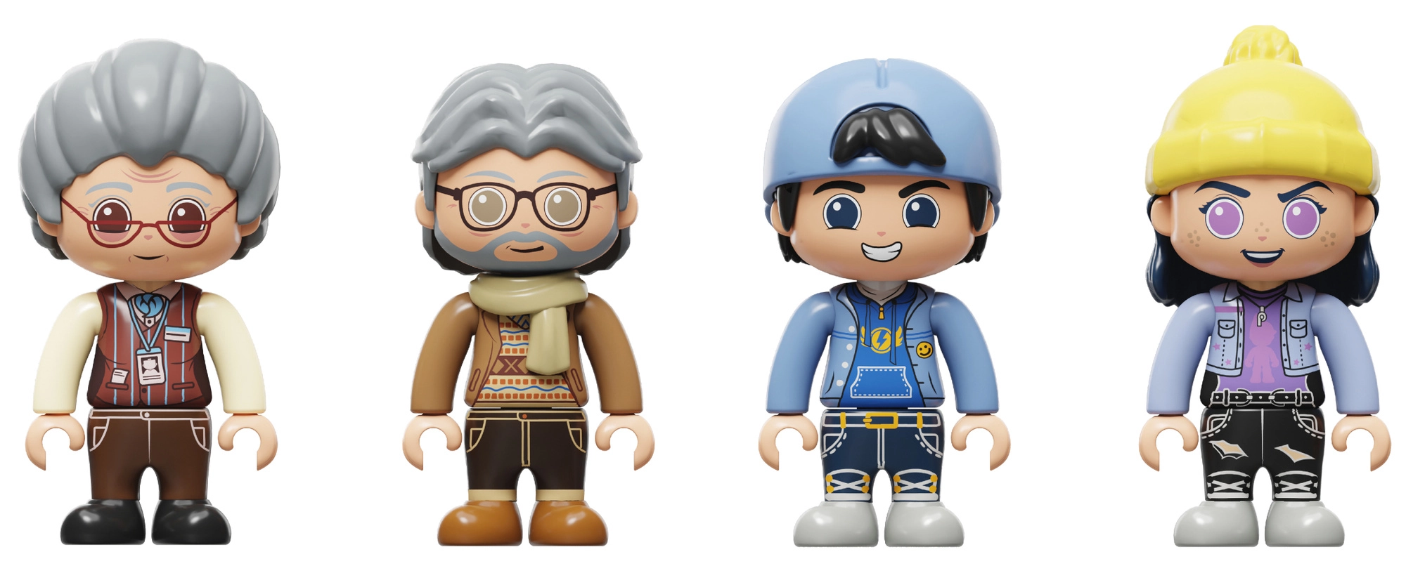 Sada obsahuje štyri postavičky s výraznými outfitmi a doplnkami, ktoré dodajú scénam v hračkárstve dynamiku a charakter.