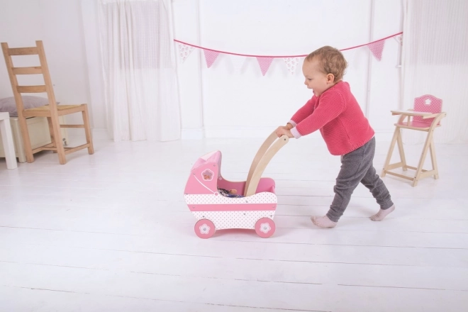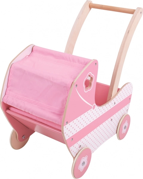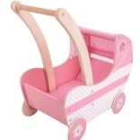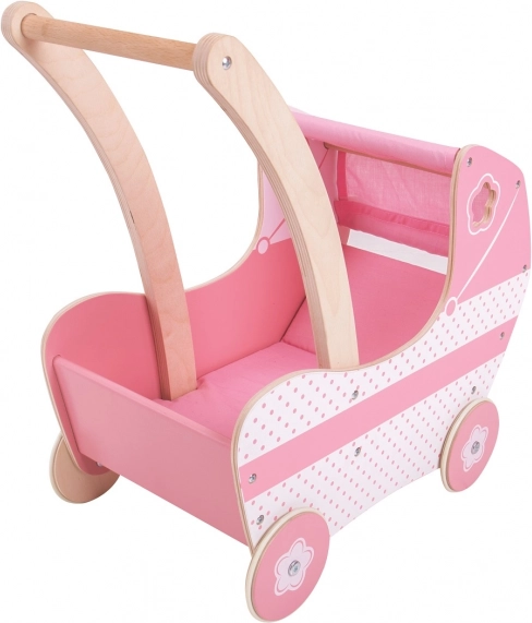Tento krásny ružový detský kočík je vybavený látkovou strieškou a dekoratívnymi vyrezávanými detailami, ktoré potešia každú malú slečnu. Hračka pomáha rozvíjať kreativitu a sociálne zručnosti detí.